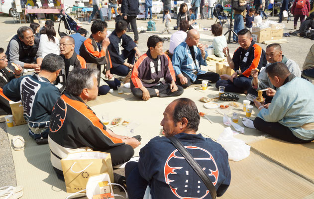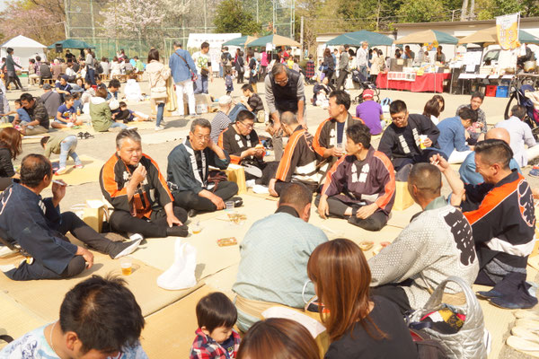 4月6日、池上本門寺五重塔まつりの木遣り先導のあと、本門寺公園でお花見を行いました。 ステージでのイベントやいろいろな出店のある中、組合員・家族がお花見気分を味わいました。