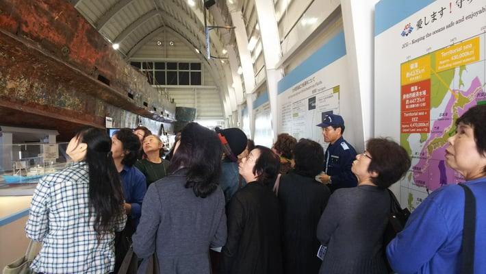 10月23日(水)横浜みなとみらいで、主婦の会の日帰り研修会が開催されました。 海上保安資料館では、係の方の説明を聞きながら展示を見学しました。昼食は、トゥーランドット游仙境で中華料理を味わい、楽しく懇談の時間を過ごしました。 昼食後、横浜美術館で絵画鑑賞をし、1日研修を終えました。