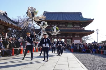 令和8年1月11日(日)に、大森鳶組合は大田区内4か所(浦守稲荷神社・馬込八幡神社・大森建設組合・池上本門寺)で、「はしご乗り」を行ないました。 朝から強風が吹く中、各会場とも大勢の来場者が訪れ、乗り子の多彩な技の披露に大きな驚きの声と歓声があがりました。